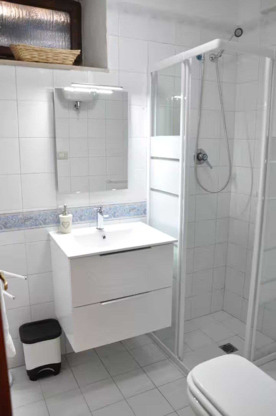 Piano inferiore: camera doppia e bagno completo di tutti i servizi e con dotazioni extra (shampoo sapone kit ospiti)