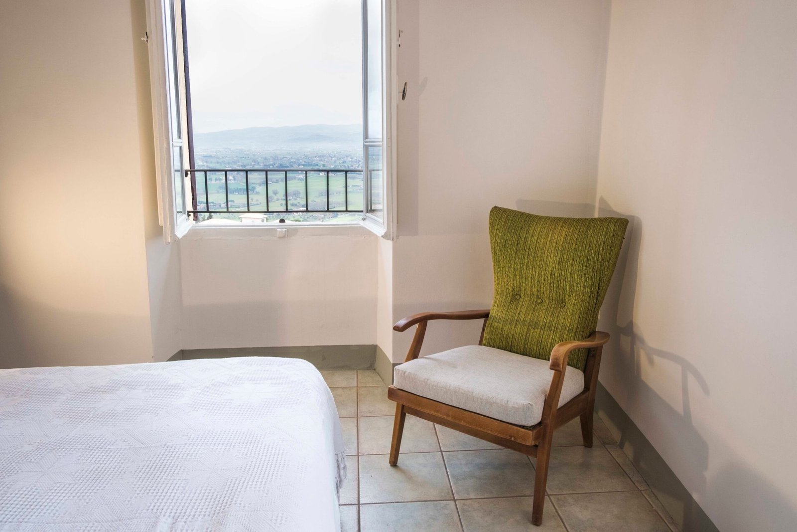 L’appartamento situato al terzo piano, senza ascensore, di un palazzo storico vi accoglierà con la sua splendida vista sulla piana di Assisi e sui caratteristici tetti della città.