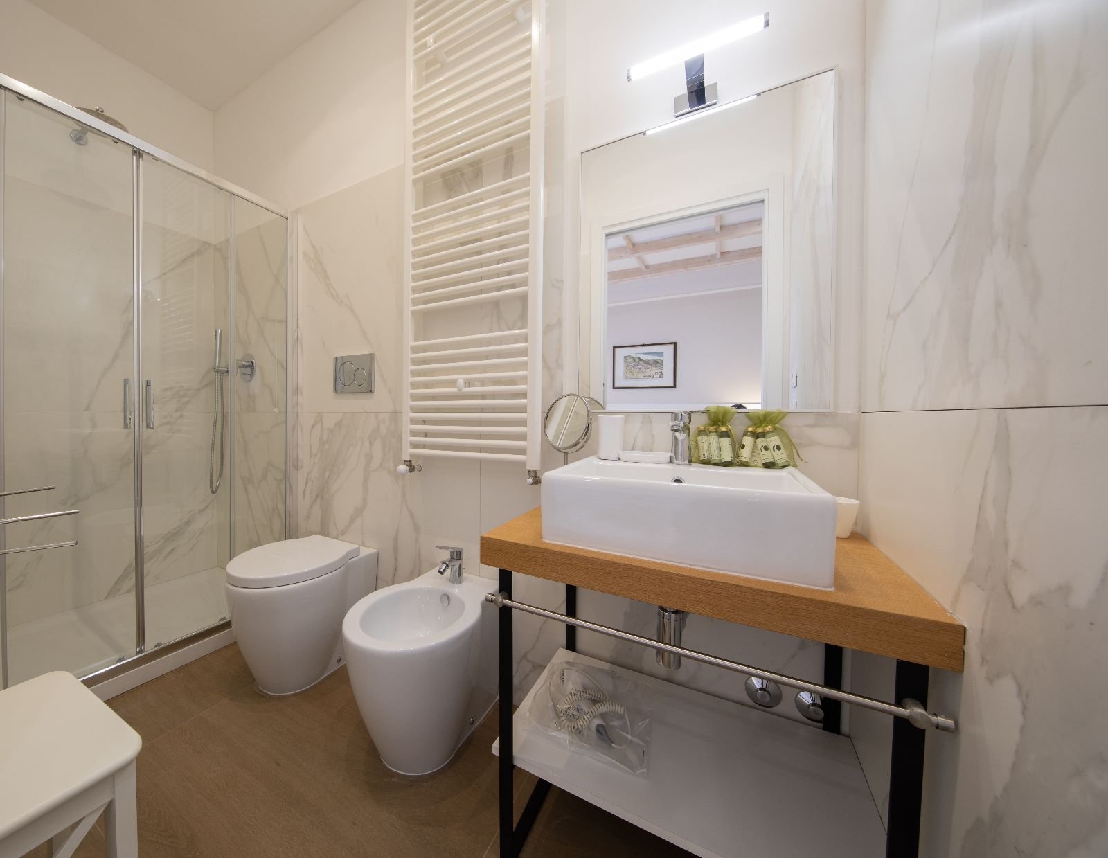 Ogni camera è dotata di bagno, aria condizionata/riscaldamento, smart TV, wifi, frigobar e bevande, phone, kit di benvenuto.